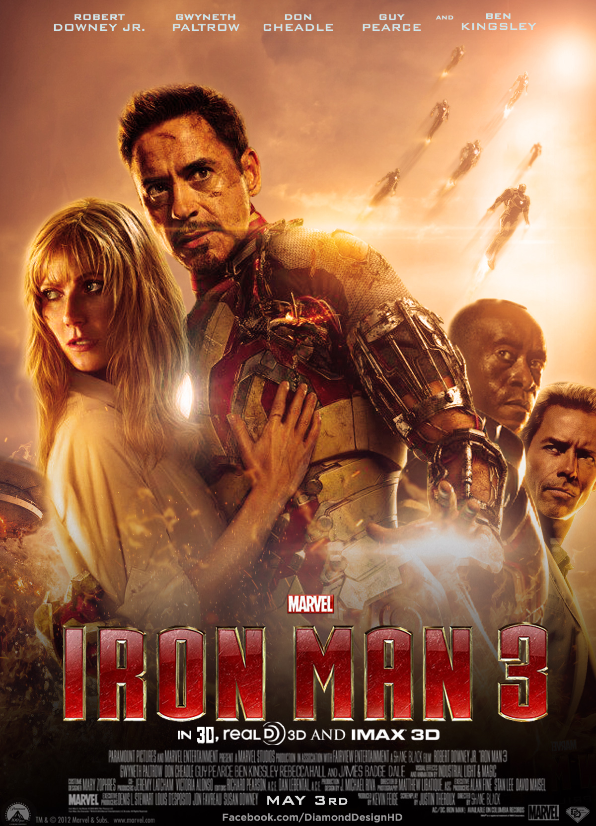 “Iron Man 3” — Director: Shane Black Starring: Robert Downey Jr, Gwyneth Paltrow, Don Cheadle, Guy Pearce, Rebecca Hall and Ben Kingsley Running Time: 130 minutes (10 minutes of explosions could have easily been jettisoned!)