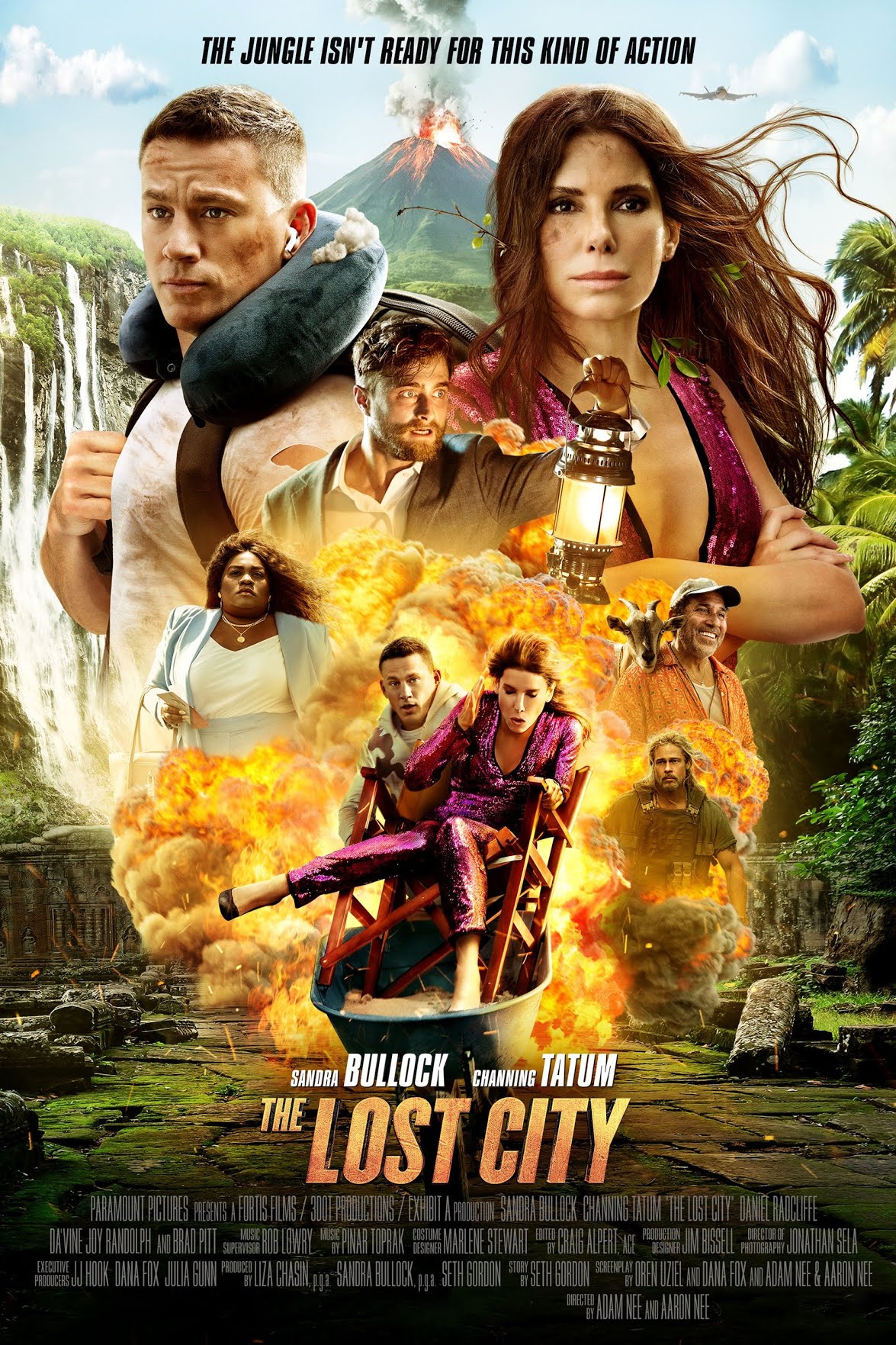 “The Lost City” (playing at theaters) has moments that will give you the giggles. There’s great chemistry between Sandra Bullock, romance author Loretta Sage, and Channing Tatum, cover model Alan. It’s easy to see why they’re America’s Sweethearts: not only are they incredibly good-looking, but they both seem like humans you’d want to be friends with too. Their interviews and promos together with Daniel Radcliffe (as a self-entitled prick) are full of good-natured ribbing and comradery. Bullock helmed the film as a producer for Paramount Pictures and she hired great directors with the brothers Nee (Aaron Nee, Adam Nee). There’s a great interview with the three stars in the NYTimes: “A ‘Lost City’ Group Chat“, Kyle Buchanan, March 17, 2022