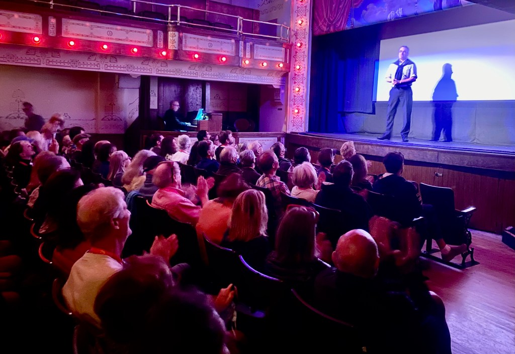 As a volunteer at the Sheridan Opera House, I get to see many unusual Film offerings. This year, a highlight was the Georges Méliès restored films with piano accompaniment and commentary by the amusing Serge Bromberg. There were even stereoscopic glasses to watch portions in 3-D. A perfect venue to see these silent shorts as the Opera House was built in 1913.