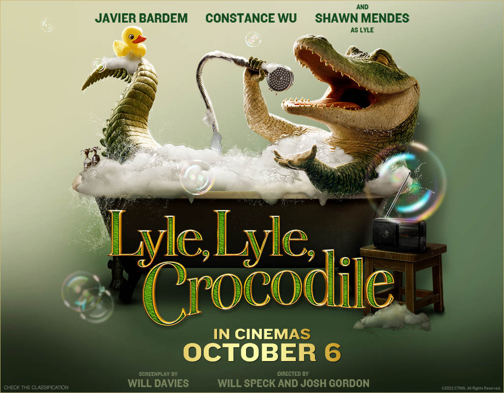 While you might still find the Minions movie, “Rise of Gru”, “DC League of Super Pets” or maybe a classic Halloween film, there’s also the new live-action/computer-animated musical “Lyle, Lyle, Crocodile” in wide-spread release. Directed by Will Speck and Josh Gordon (screenplay by William Davies), the film is an adaptation of the beloved children’s book of the same name (author Bernard Waber). There have been other adaptions of the book. This one features some big names in the cast.