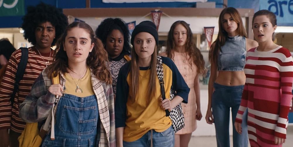The plot is funny. Two best friends think that starting a fight club in high school will score them points with the cheerleaders they’ve got crushes on. Rachel Sennott’s character, PJ, is crass and sarcastic. It’s refreshing to see a performance where the star isn’t afraid to play an unlovable character. Her best friend, Jose, is played by Ayo Edebiri. Her character reluctantly goes along with the brash plan, but she too begins to spin yarns to catch the eye of her crush (Havana Rose Liu). There’s lots of scenes spoofing high school films. The characters are tossing off insults in class and then minutes in, the bell rings. PJ’s says, “That’s it?!” –acknowledging that the scene was just about introducing the character conflict.