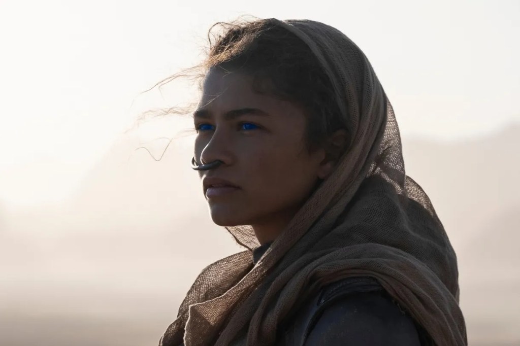 Director Denis Villeneuve centers women’s voices in his film adaptation of Frank Herbert’s Dune (1965). The first film, “Dune”, is narrated with voice-over from Chani, Zendaya’s Fremen character. She will be our lead character’s love interest. Timothée Chalamet’s gets to grow up from the young Paul Atreides, on his home world of Caladan (resembling the Scottish Highlands) to the young warrior of the second film. In “Dune”, Chani is mostly seen in Paul’s visions. Yet, it’s those visions and the research we see Paul doing that introduce us to the desert planet, Arrakis. Chani tells Paul that he must earn his place among the Fremen, teaching him that everyone, male and female, are equal and strive for the greater good of all the tribe.